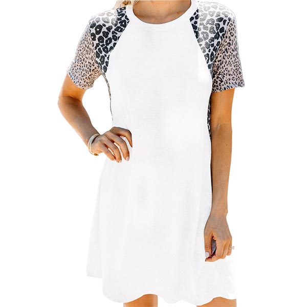 Fashion Leopard Spliced Short Sleeve Round Neck Dress