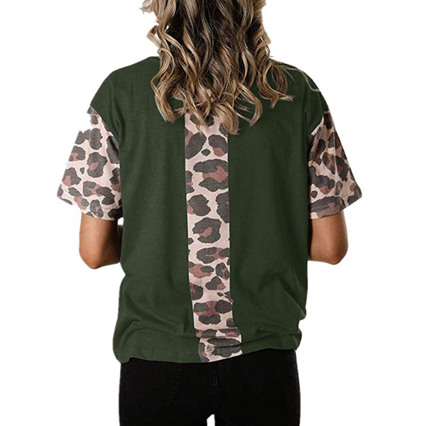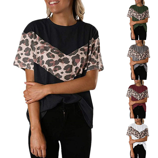 Fashion Leopard Spliced Short Sleeve Round Neck Loose T-shirt