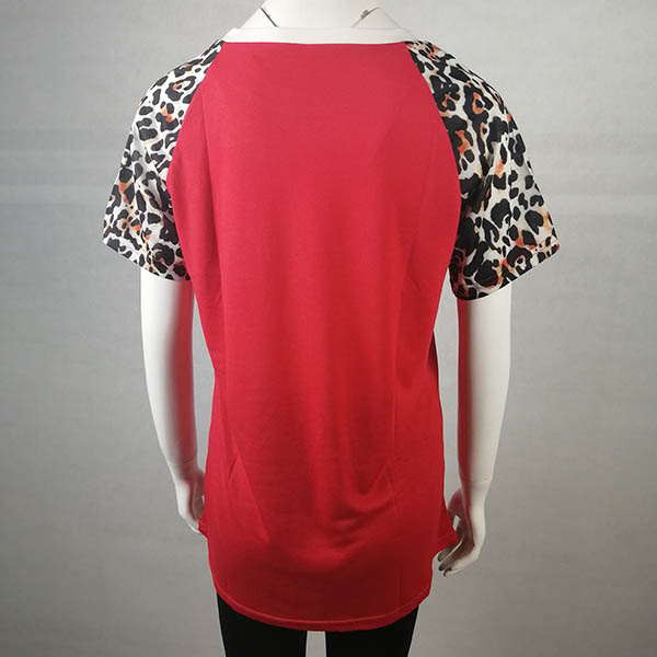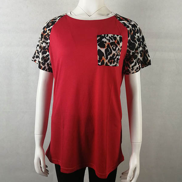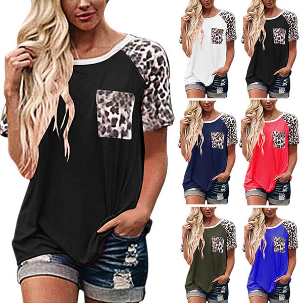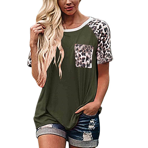 Fashion Leopard Spliced Short Sleeve Round Neck T-shirt