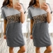 Fashion Leopard Spliced Short Sleeve Round Neck T-shirt Dress