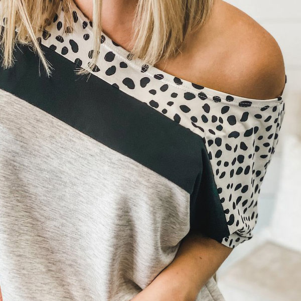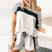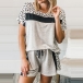 Fashion Leopard Spliced Short Sleeve Round Neck T-shirt + Shorts two-piece Set