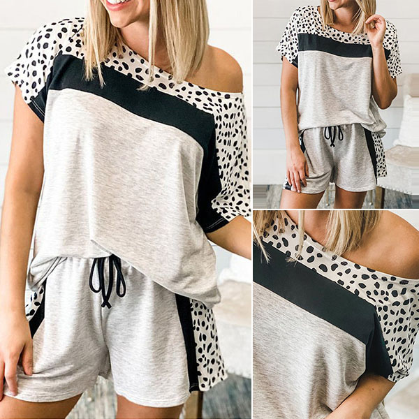 During your home time,you deserve to have an utmost comfort with this two-piece set. Including a short sleeve round neck t-shirt and a shorts,the leopard printed details will make it look more stylish and attractive. You can just enjoy your home time and sleeping time with this two-piece set.