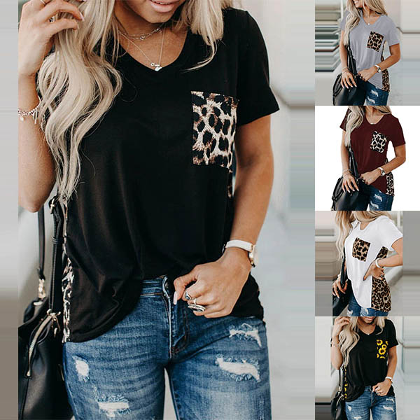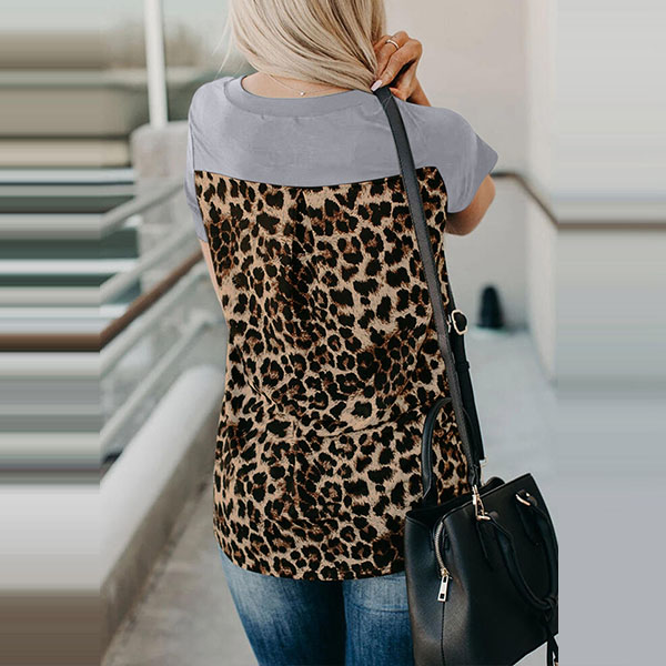 Fashion Leopard Spliced Short Sleeve V-neck T-shirt