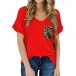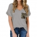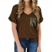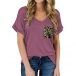 Fashion Leopard Spliced Short Sleeve V-neck T-shirt