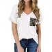 Hey,girls,you can update your t-shirt collection with this wonderful piece. It is crafted from soft and breathable fabric,with short sleeve and v-neck design,this piece can offer you a comfortable day. And the leopard spliced chest pocket design will enrich the design style and boost its entire charm. You can trust in this piece to give you a simple and laid-back daily style.