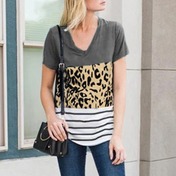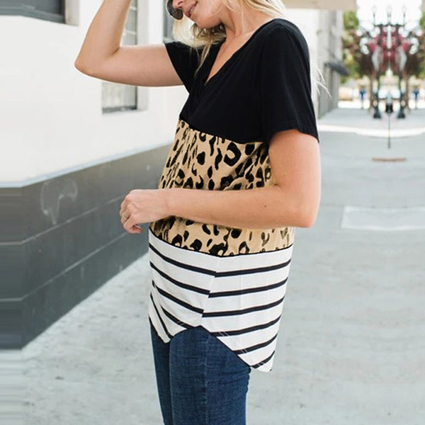 This t-shirt that combines of cozy,stylish vibes is worth to arouse your attention. The leopard and stripe element will enrich the design style,while its soft,breathable fabric can ensure you a comfortable day. All-match design allows to be matched with different style bottoms.