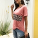 Fashion Leopard Spliced Short Sleeve V-neck Twisted Hem T-shirt