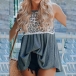 Fashion Leopard Spliced Sleeveless Round Neck Loose Top