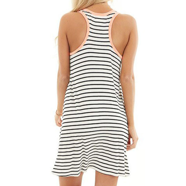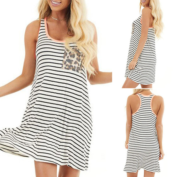 On your lazy days,you can just slip into this dress to have a comfortable day. The leopard printed and stripe element design make this piece look more stylish and attractive. For your daily out,you just need to match with your favourite shoes,then you can be ready to go out!