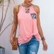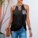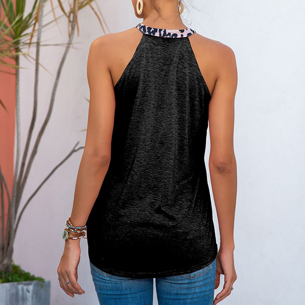 Fashion Leopard Spliced Sleeveless Round Neck Twisted Hem Top
