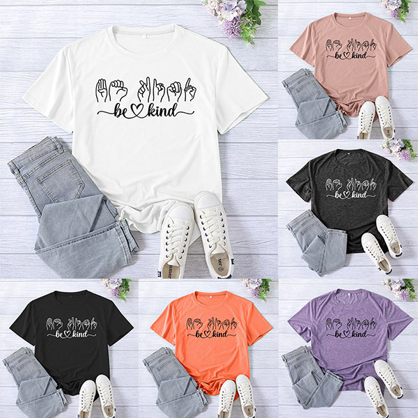 Fashion Letter Printed Round Neck Short Sleeve Shirt