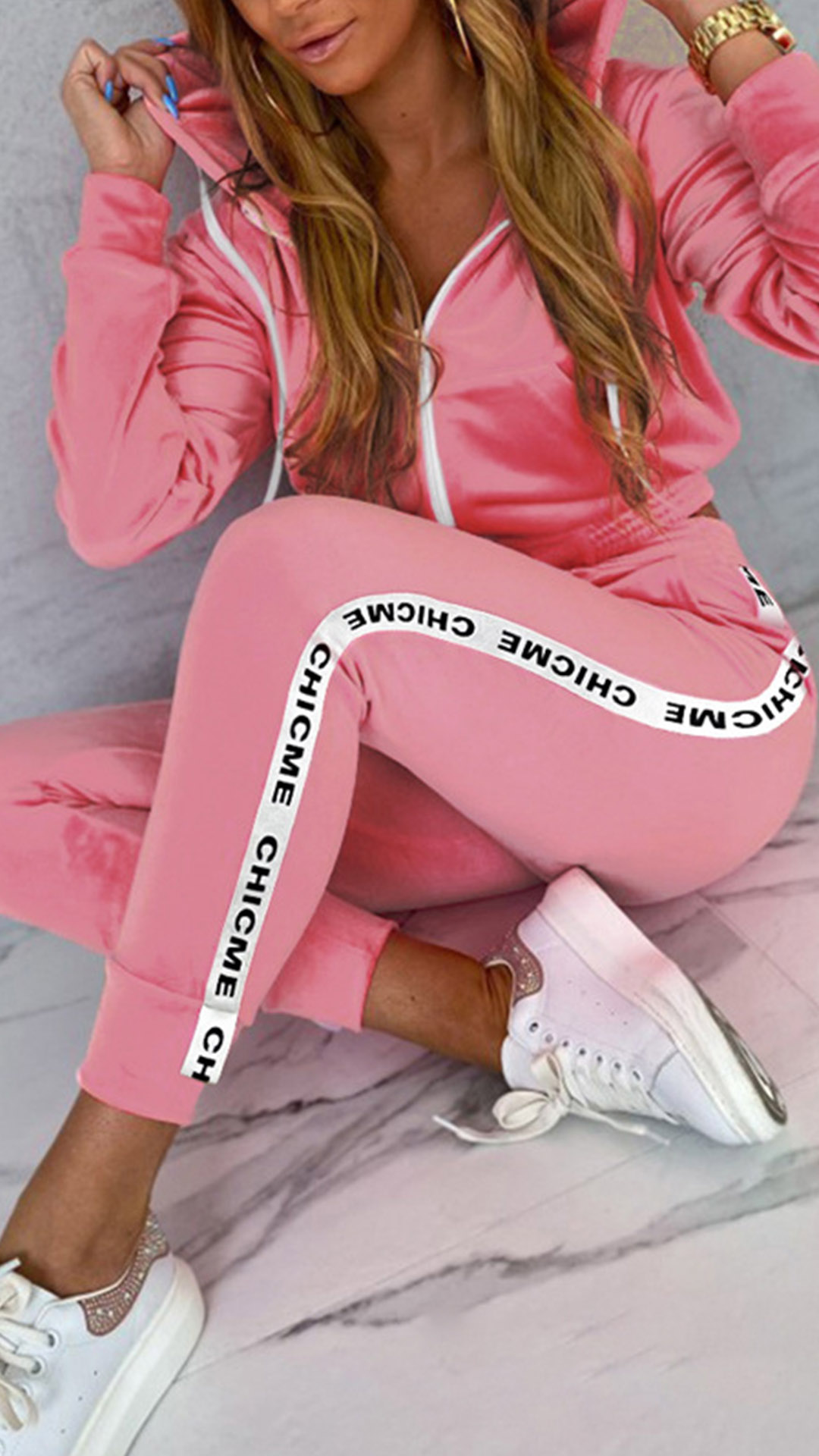 Fashion Letter Printed Two-piece Sport Set Consist of Hooded Jacket and Drawstring Pants
