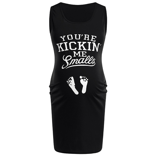 Fashion Letters Footprint Printed Sleeveless Round Neck Maternity Dress