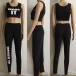 Letters printed style,including a sleeveless round neck crop tops and a high waist pants,