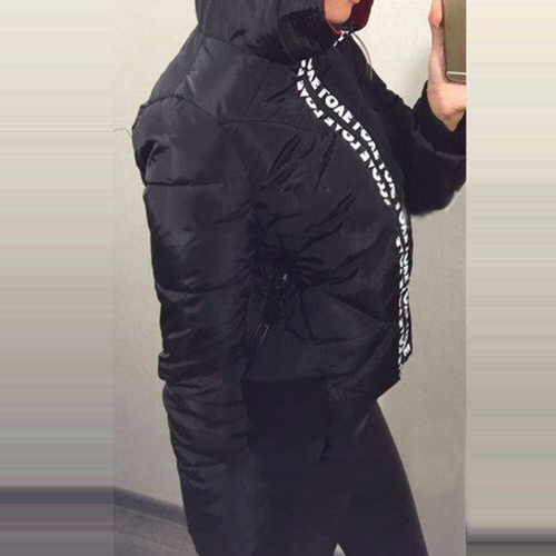 For the chilly nights ahead, be sure to embrace the warmth of this padded coat has to offer. Letters