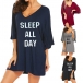 Fashion Letters Printed Half Sleeve V-neck Loose T-shirt Dress