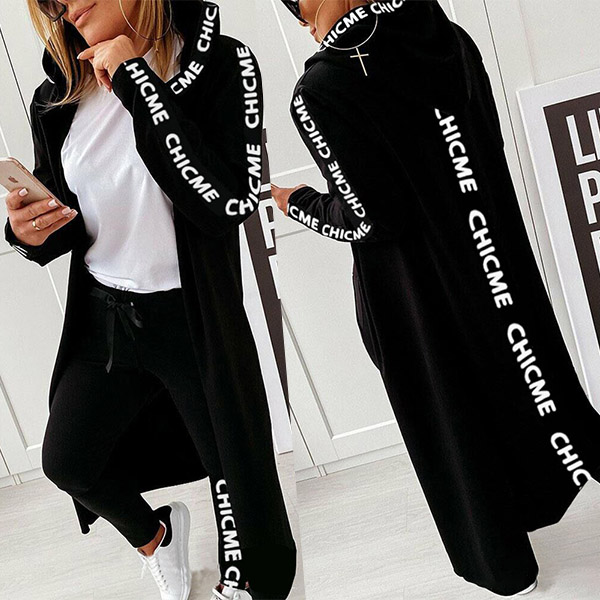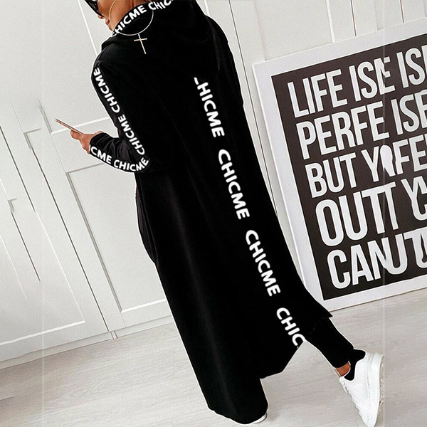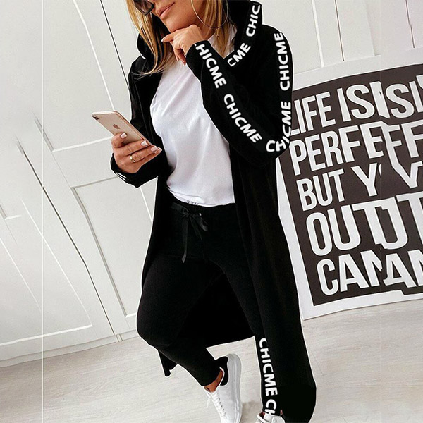 Fashion Letters Printed Long Sleeve Hooded Cardigan Coat + Pants Two-piece Set
