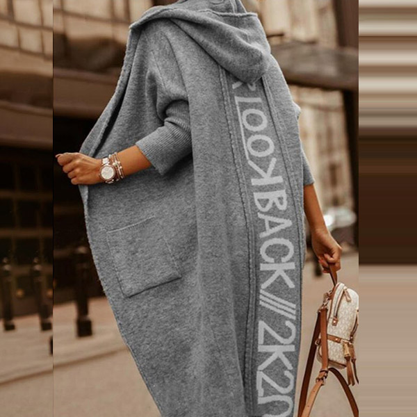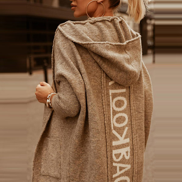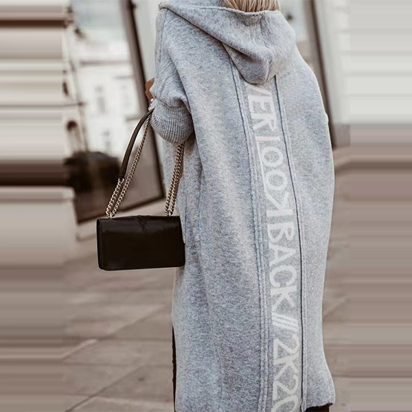 For these autumn days,a cozy yet stylish knit cardigan is an essential. So might we suggest you this piece? The letters printed details at the back side will enrich the design style. Finished with long sleeve,hooded and a loose silhouette,this cardigan not only can keep you warm,but also can be matched with different style outfits.