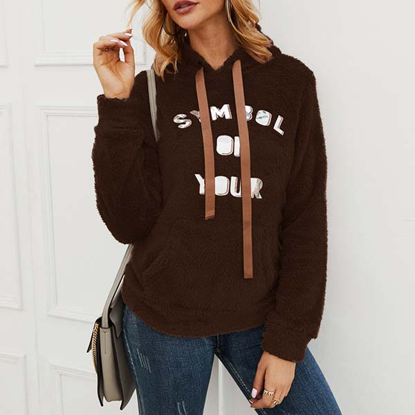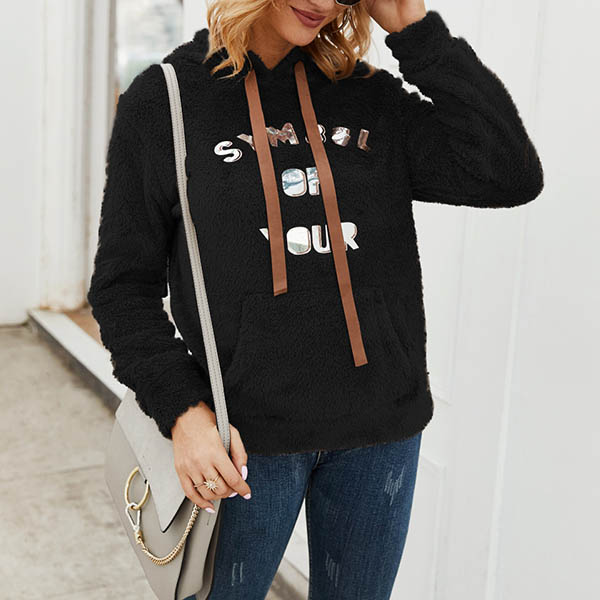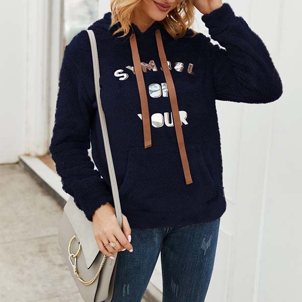 Fashion Letters Printed Long Sleeve Hooded Plush Sweatshirt