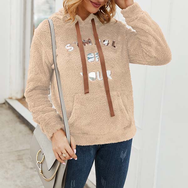 Crafted from soft and cozy plush fabric,with long sleeve and hooded silhouette design,this sweatshirt is your perfect choice when the days get cold. And the letters printed details will boost its charm. Try to match with a jeans to have a simple,laid-back and fashionable daily look.