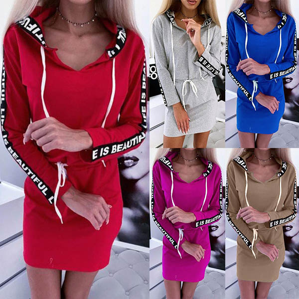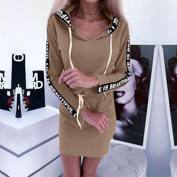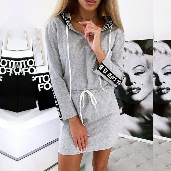 In these early autumn days,this sweatshirt dress is worth to arouse your attention. The letters printed details can easily enhance its charm. Crafted from soft and breathable fabric,with long sleeve and hooded silhouette,this dress knows how to give you a cozy yet stylish daily style. You can match it with your favourite heels or dress down with your casual flat shoes.