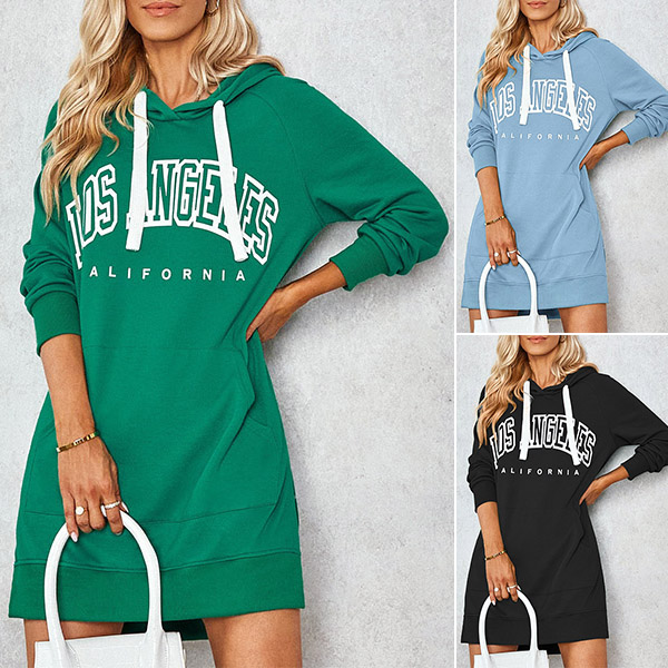 Fashion Letters Printed Long Sleeve Hooded Sweatshirt Dress