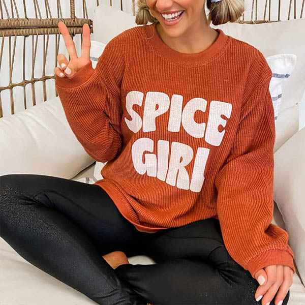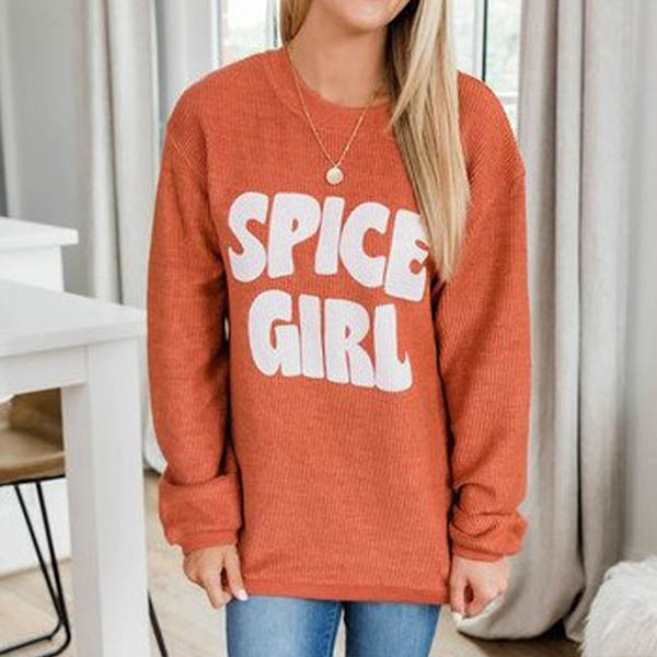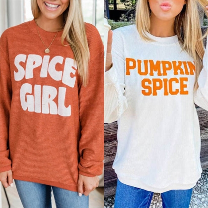 Fashion Letters Printed Long Sleeve Round Neck Sweatshirt