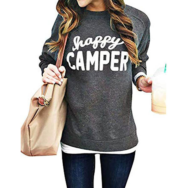 Fashion Letters Printed Long Sleeve Round Neck Sweatshirt