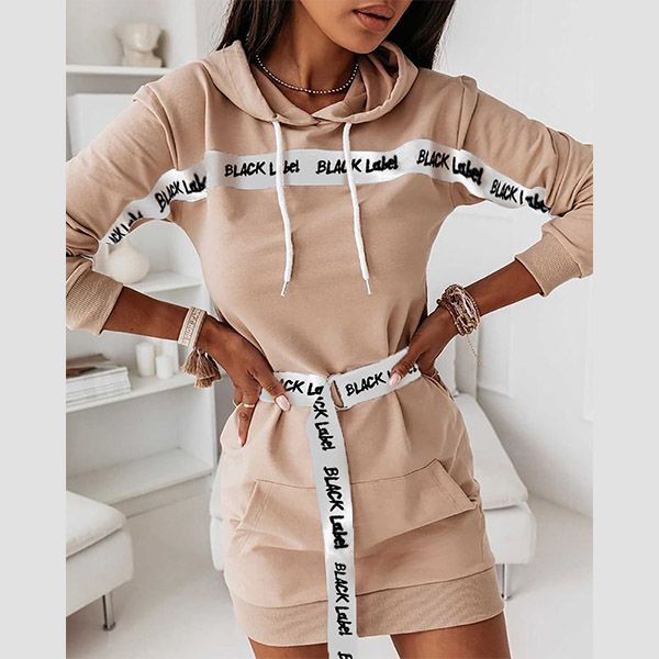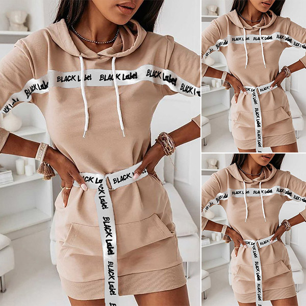 When it comes to a laid-back but fashionable autumn look,you can just have a try this sweatshirt dress. What makes this piece look so stylish and attractive? It owes to the letters printed details and ribbon spliced design. Crafted from soft and breathable fabric,with long sleeve and hooded silhouette,this sweatshirt knows how to exude your style and personality.