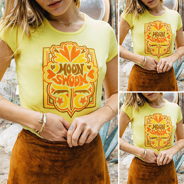 Add a dash of bright color to your simple and dull wardrobe with this t-shirt. Letters printed style,designed with short sleeve,