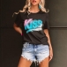 Fashion Letters Printed Short Sleeve Round Neck T-shirt