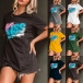 XL : Bust : 110cm(43.31"); Waist : 104cm(40.94"); Shoulder : 50cm(19.69"); Sleeve : 20cm(7.87"); Length : 72cm(28.35");