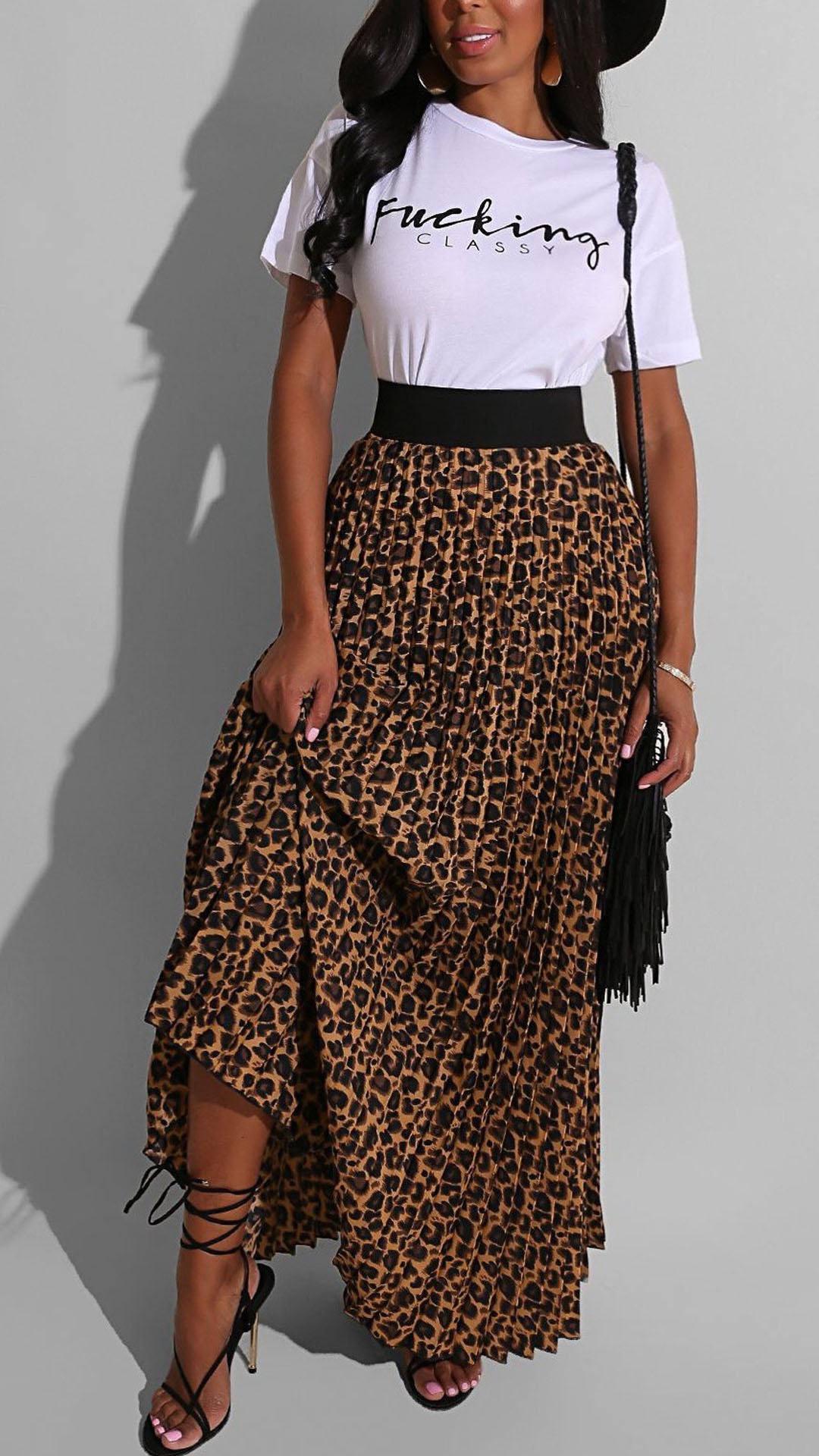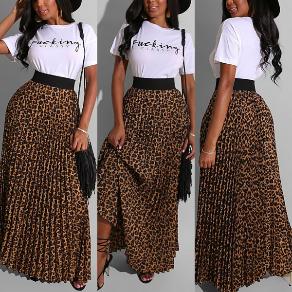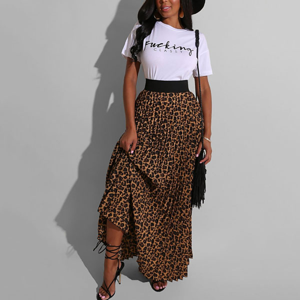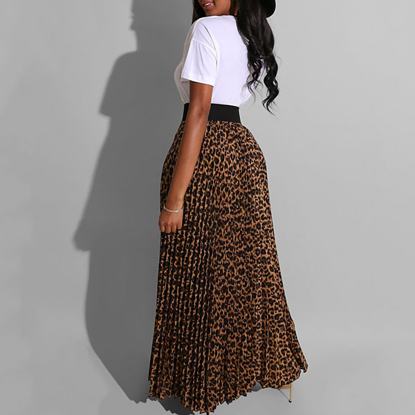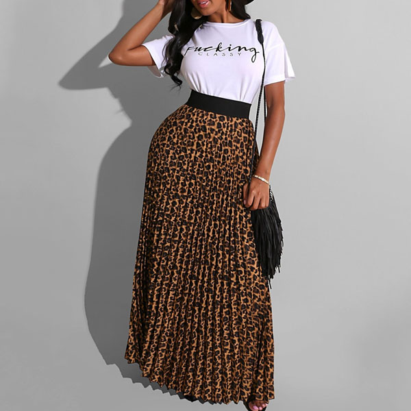When you have no time to do your daily matching,then this two-piece set can be your perfect solution. It consists of a short sleeve round neck t-shirt and a leopard printed skirt,this two-piece set can give you a perfect transition from your busy workdays to casual weekends.