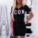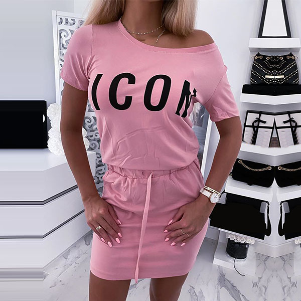 When you have no time to do your wardrobe matching,then you can make your eyes focused on this two-piece set. The letters printed details make it look more stylish. Including a short sleeve round neck t-shirt and a high waist skirt,this two-piece set not only can give you a comfortable day,but also can maintain your style and personality.