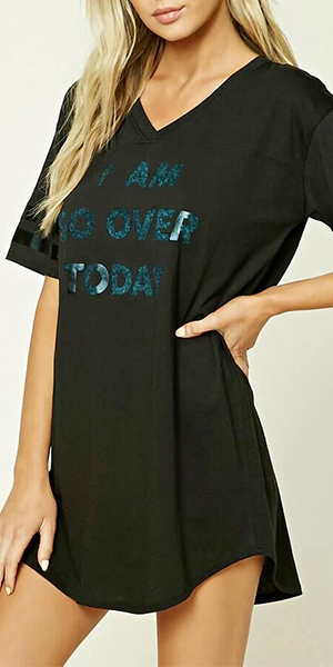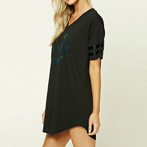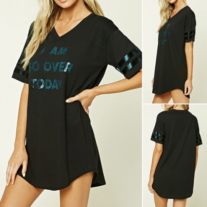 You can keep cozy yet casual in this t-shirt dress. Letters printed style,with short sleeve,v-neck,