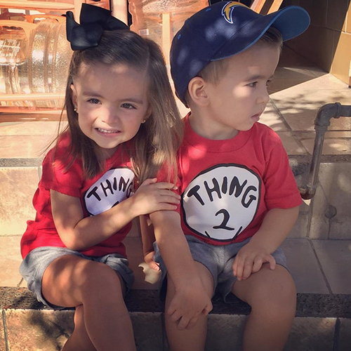 You can enjoy your pleasure time with this parent-child T-shirt. It is styled with letters printed style, with