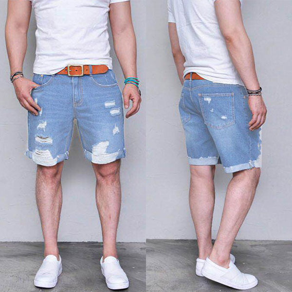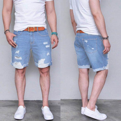 This fashionable ripped shorts is fit for those boys which can pursue fashion and cool.Simple design without