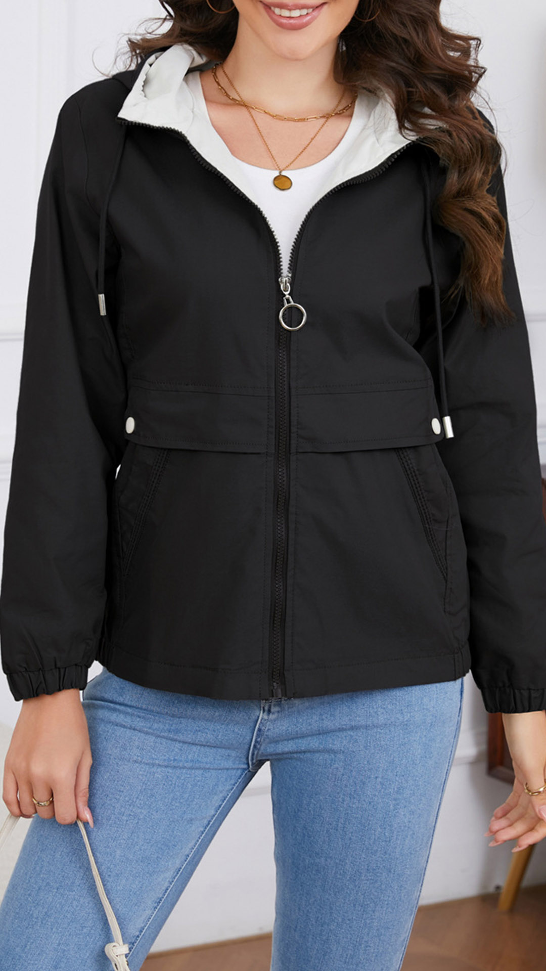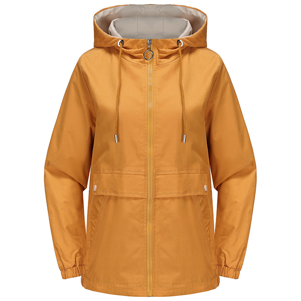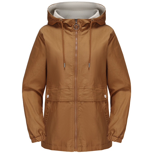 Fashion Lightweight Long Sleeve Drawstring Hooded Trench Coat for Women