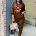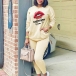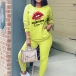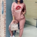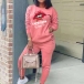 Fashion Lip Printed Two-piece Sport Set Consist of Long Sleeve Sweatshirt and Sweatpants