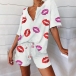 Fashion Lips Printed Short Sleeve V-neck T-shirt + Shorts Two-piece Set