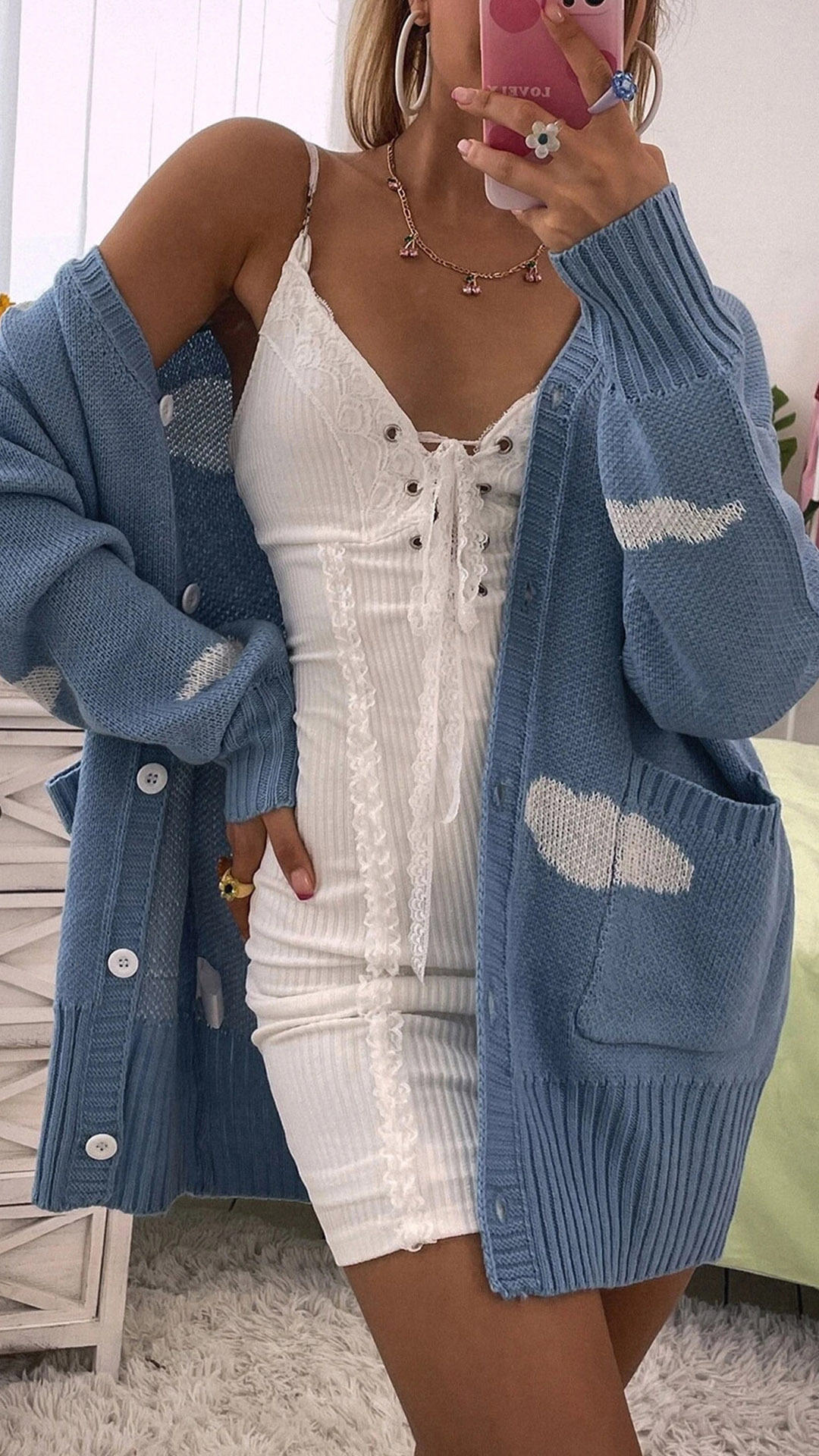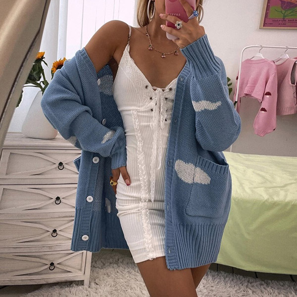 Fashion Long Sleeve Cloud Pattern Knitted Cardigan