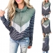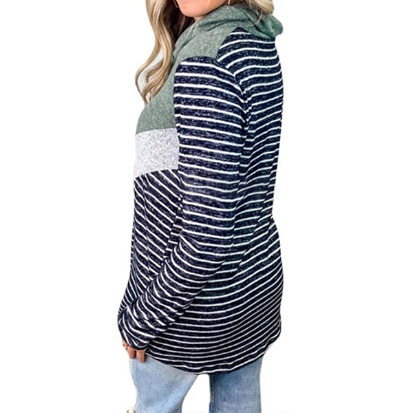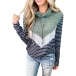 Fashion Long Sleeve Cowl Neck Contrast Color Stripe Sweatshirt
