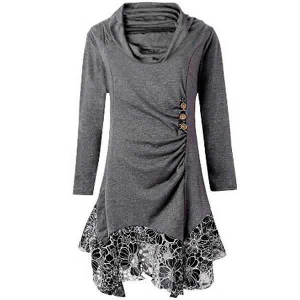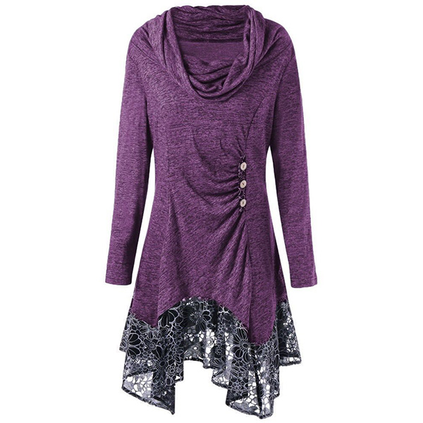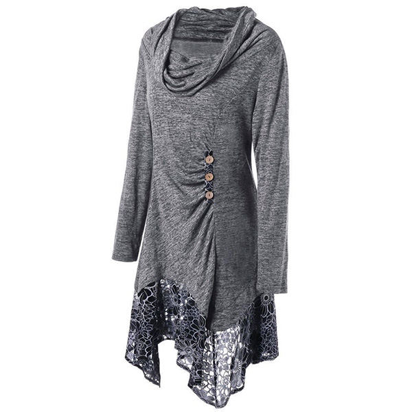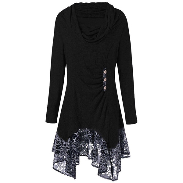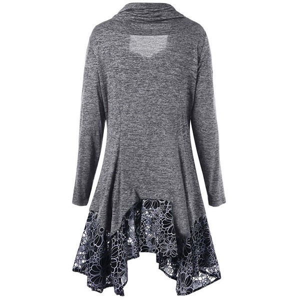 Fashion Long Sleeve Cowl Neck Lace Spliced Hem Dress