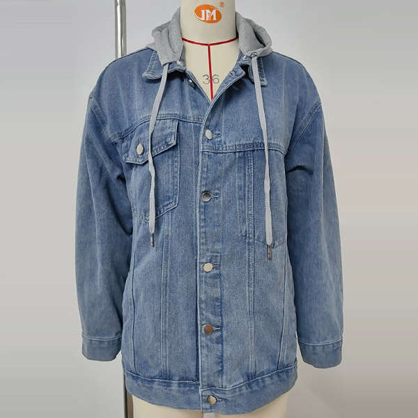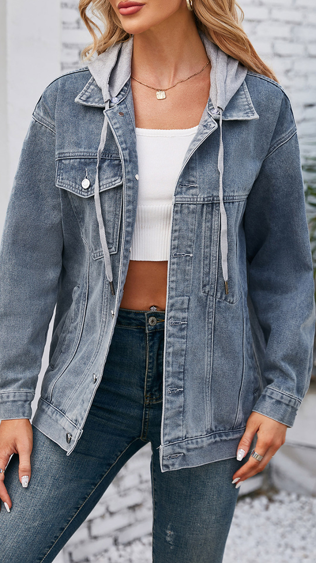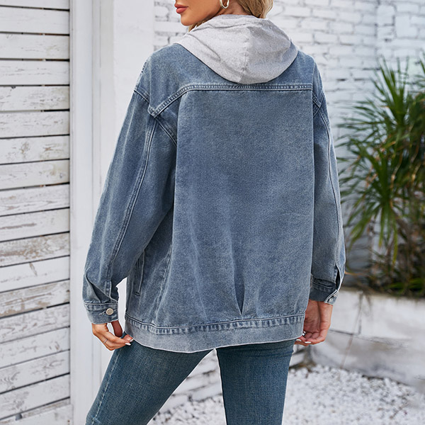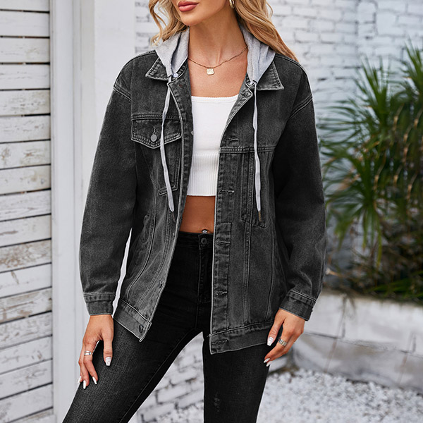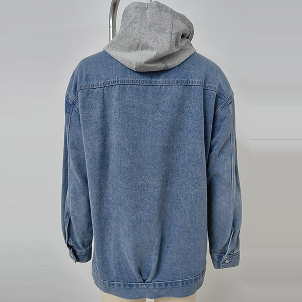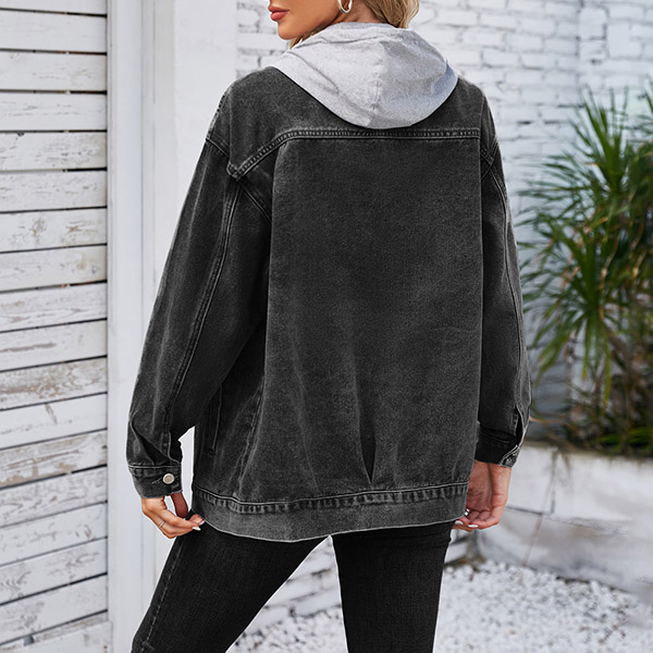 This denim jacket features long sleeves, a detachable hood, and an old-washed finish, creating a stylish and versatile outerwear piece. Pair it with jeans and a t-shirt for a classic denim-on-denim look!
