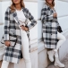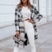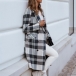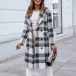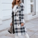 Fashion Long Sleeve Double-breasted Loose Plaid Woolen Coat Jacket