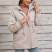 Fashion Long Sleeve Drawstring Waist Front Zipper Plush Lined Jacket for Women