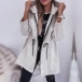 Stay on-trend with this fashion jacket for women. The hooded design offers a casual and sporty vibe, perfect for adding a laid-back touch to your outfit. The drawstring waist allows you to cinch in the jacket for a customized and flattering fit, creating a defined silhouette. Wanna have a try?