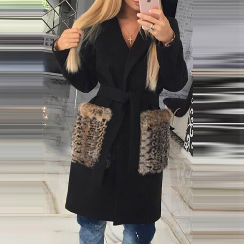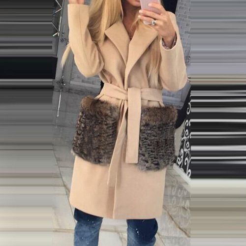 sleeve,lapel and a longline silhouette,classic and stylish. Its faux fur spliced pockets design