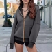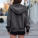 Fashion Long Sleeve Front Kangaroo Pockets Front Zipper Hooded Sweatshirt Jacket