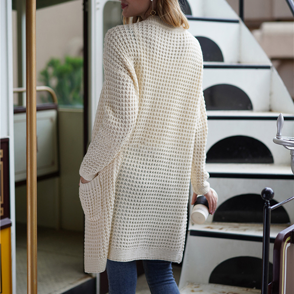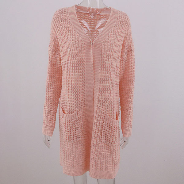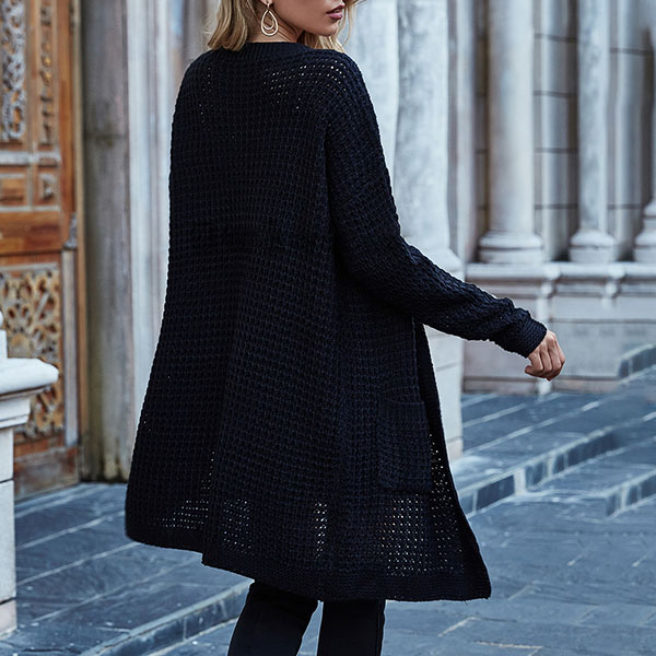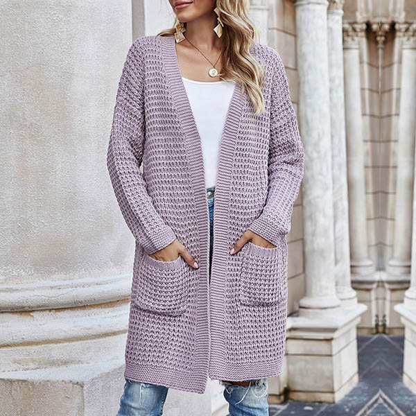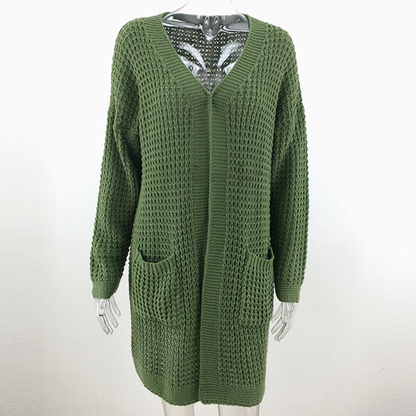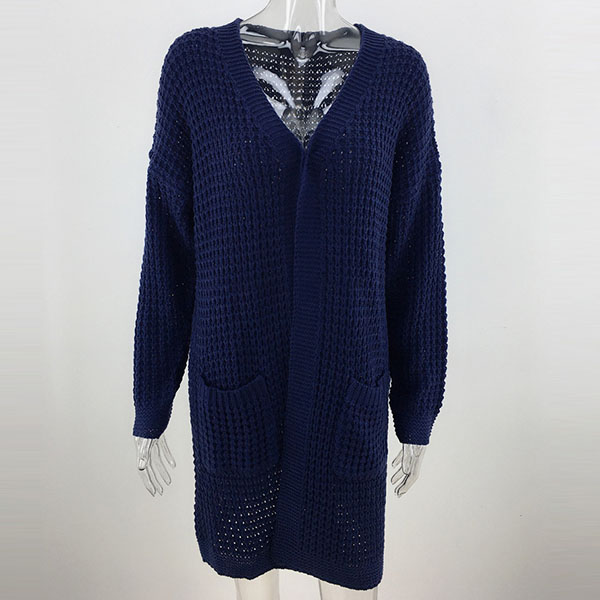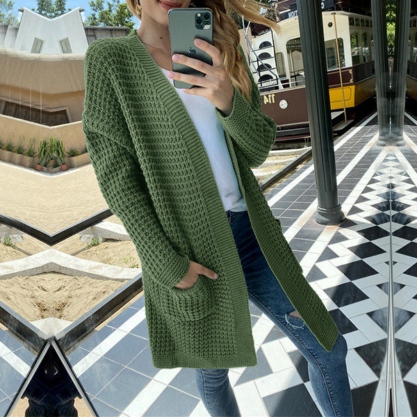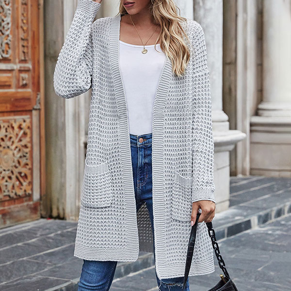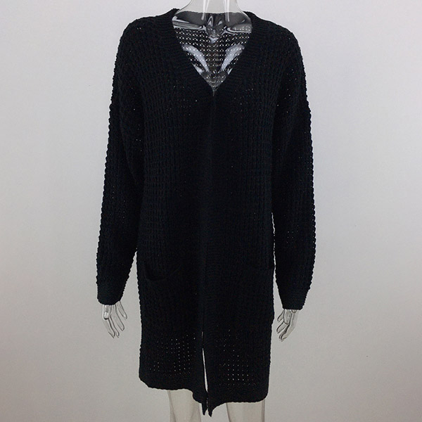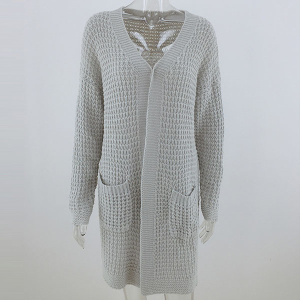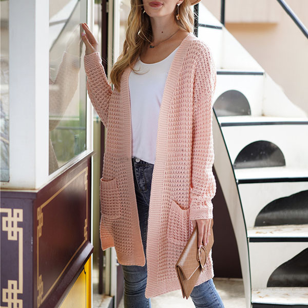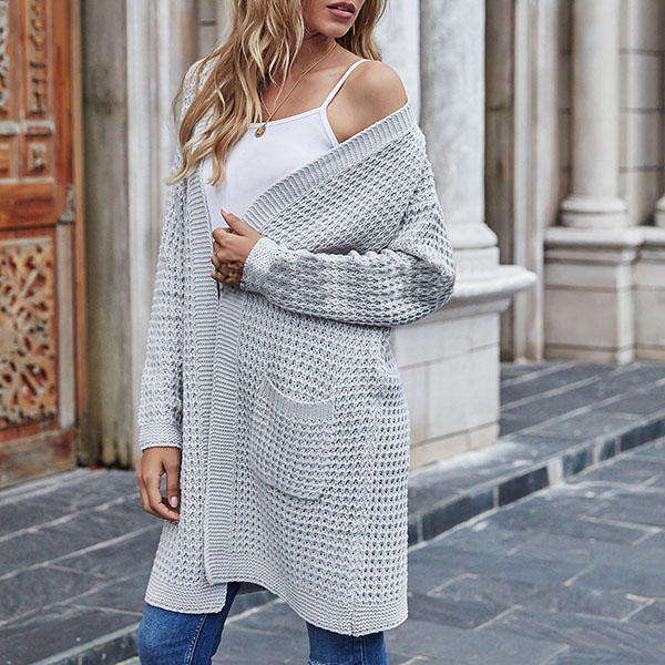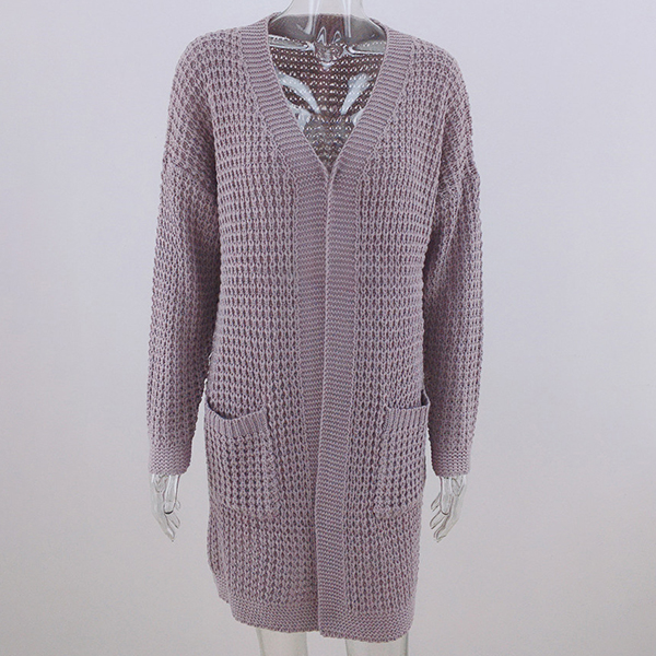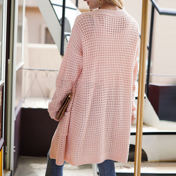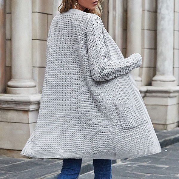 Fashion Long Sleeve Front-pocket Loose Knit Cardigan